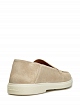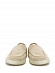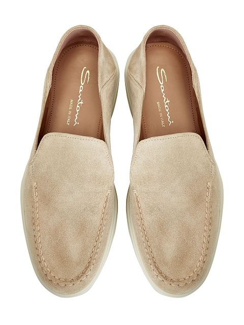 Женские лоферы от Santoni выполнены из фактурной замши в бежевом оттенке. Модель-трансформер дополнена складной спинкой, которая позволяет носить изделие в качестве мюлей. Минималистичное исполнение делает обувь универсальным элементом расслабленных повседневных образов и аутфитов в стиле casual. Литая подошва и внутренняя отделка из кожи обеспечивают комфорт в течение дня. Сделано в Италии.