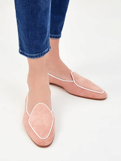 Лоферы из бархатистой замши с контрастной окантовкой