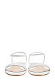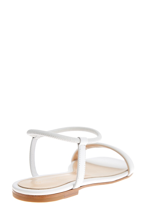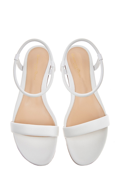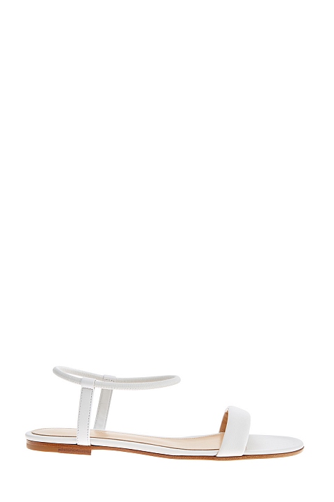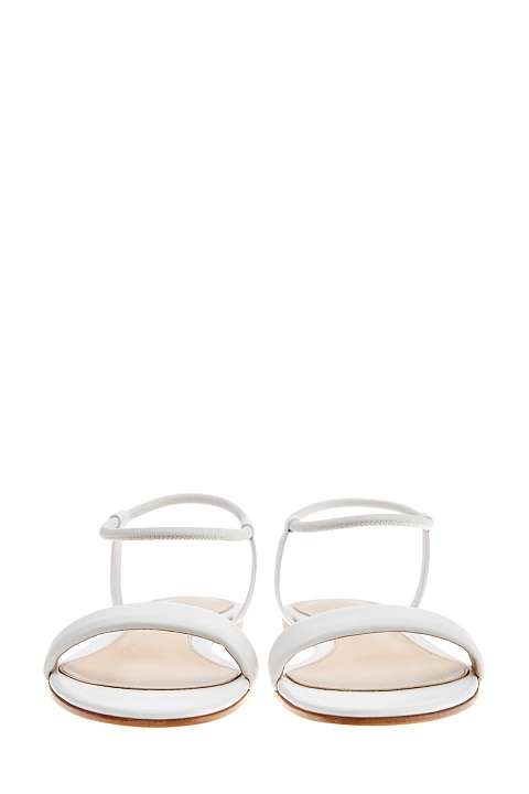Минималистичные босоножки на низком ходу от Gianvito Rossi выполнены из матовой кожи в базовом белом цвете. Модель с мягкими лентами из кожи дополнена эластичной широкой резинкой вокруг щиколотки, которая позволяет быстро снимать и надевать обувь, а также обеспечивает комфортную фиксацию. Детали: небольшой ортопедический каблук, внутренняя кожаная отделка. Сделано в Италии.