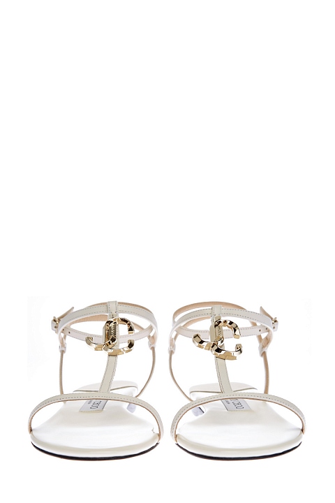 Минималистичные сандалии Alodie от Jimmy Choo выполнены из мягкой кожи наппа в лаконичном белом цвете. Тонкие ремешки и гибкая подошва из кожи придают образу легкость. Литая символика бренда дополнена золотистым напылением. Детали: закругленный мысок из лакированной кожи, дышащая кожаная стелька, регулируемая застежка с пряжкой. Сделано в Италии.