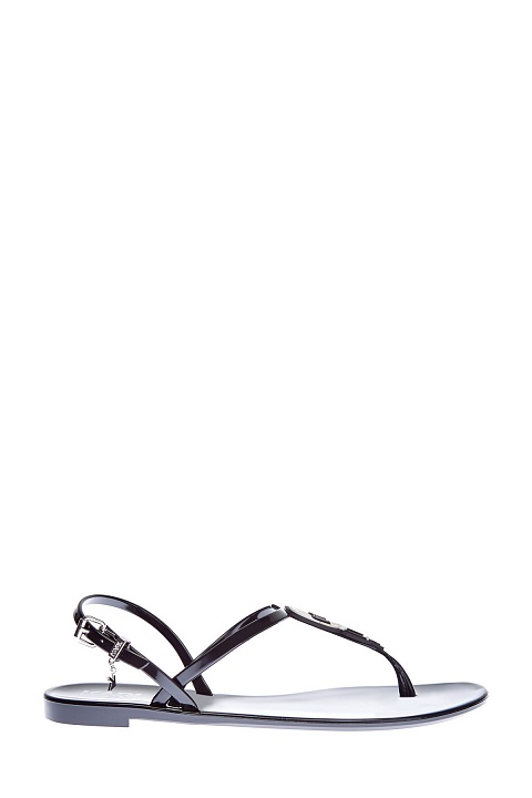Глянцевые босоножки с фирменным декором и металлическими пряжками