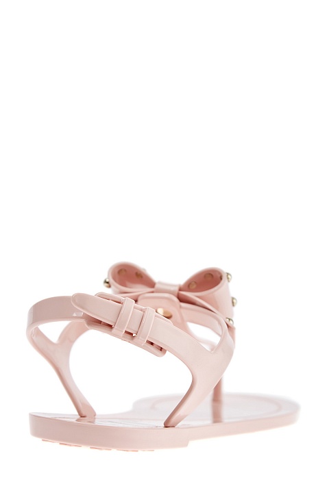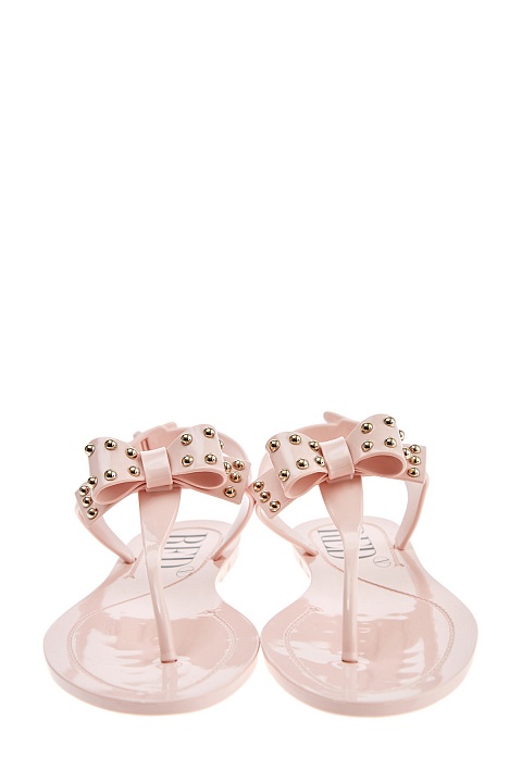 Лаконичные сандалии Jellybeans от REDValentino выполнены из гибкого полимерного материала с глянцевой текстурой пастельного пудрово-розового оттенка. Лаконичный дизайн дополнен бантами в тон с отделкой заклепками. Фактурный узор протектора предотвращает скольжение. Застежка на пряжку завершает дизайн. Сделано в Италии.