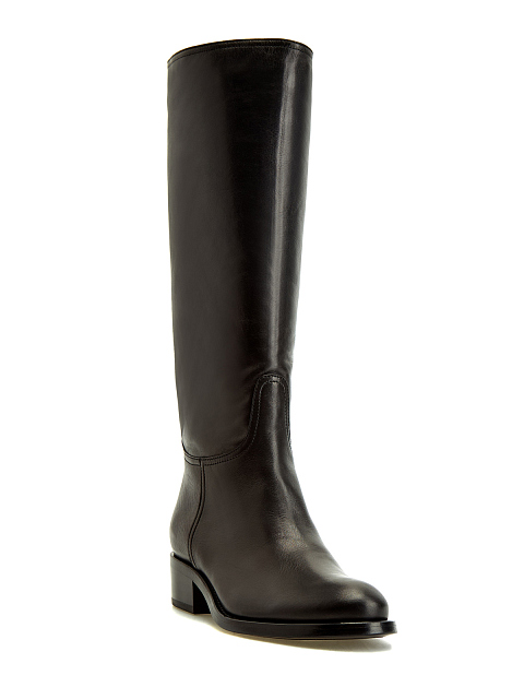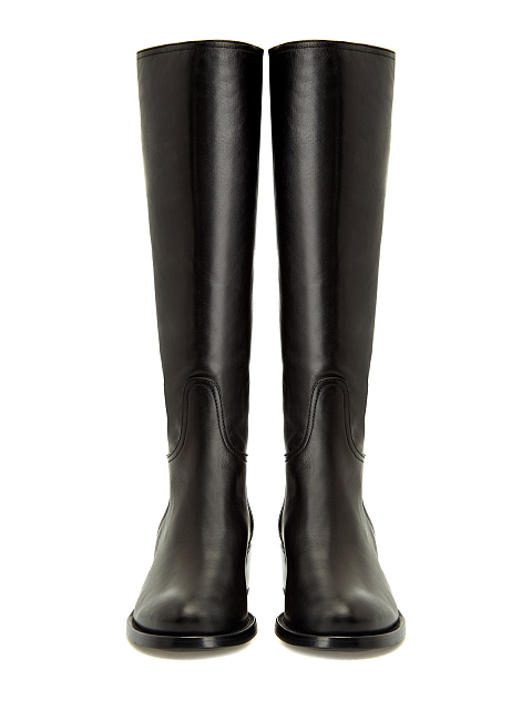 Высокие сапоги из гладкой полированной кожи на устойчивом каблуке