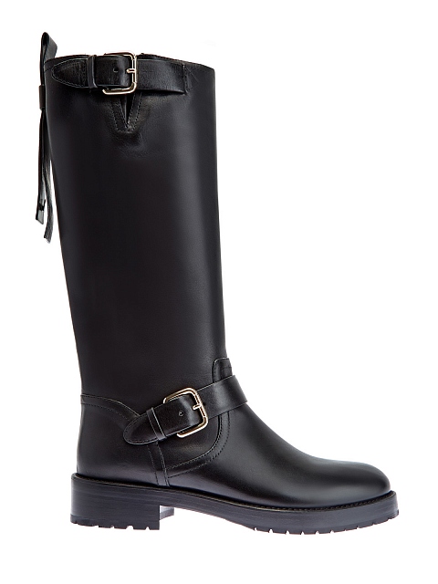 Сапоги Bikered из плотной телячьей кожи от REDValentino. Ремни с массивными пряжками придают образу фирменную эстетику в стиле глэм-рок, а широкое голенище делает повседневные образы максимально комфортными. Подошва с рельефным протектором и наборным каблуком предотвращает скольжение. Детали: закругленный мысок, выступающий рант, тисненая монограмма. Сделано в Италии.