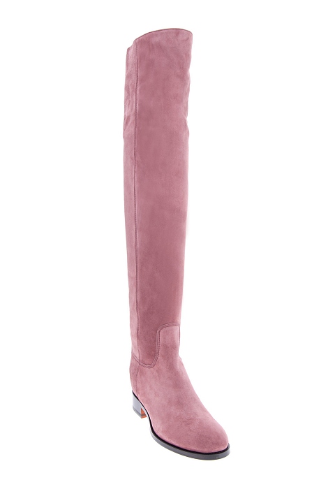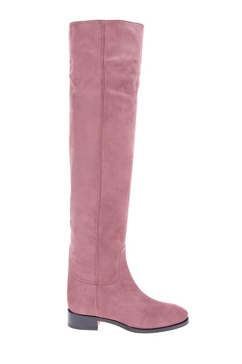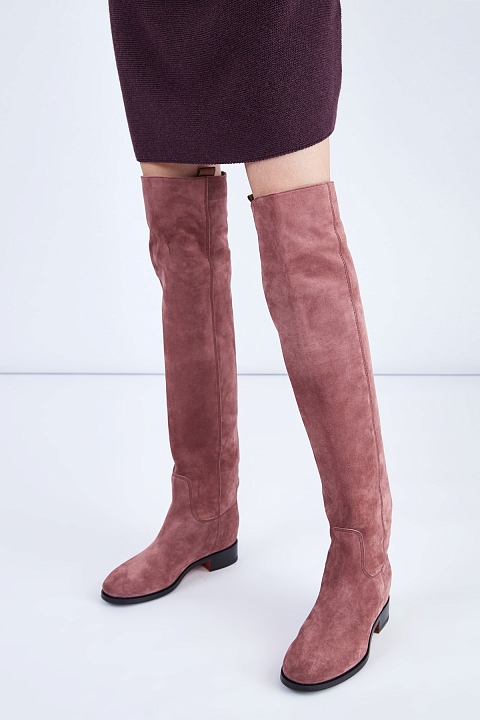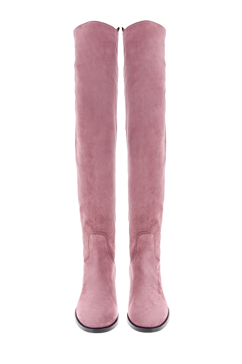 Ботфорты из замши розового тона с плотной контрастной подошвой