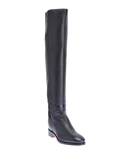 Классические женские сапоги от Santoni выполнены из мягкой зернистой кожи с гладкой внутренней поверхностью. Модель на плоской подошве и устойчивом венском каблуке, который обеспечивает комфортную посадку и делает походку уверенной даже в холодное время года. Изделие в универсальном черном цвете дополнено эластичными вставками на голенище. Сделано в Италии.