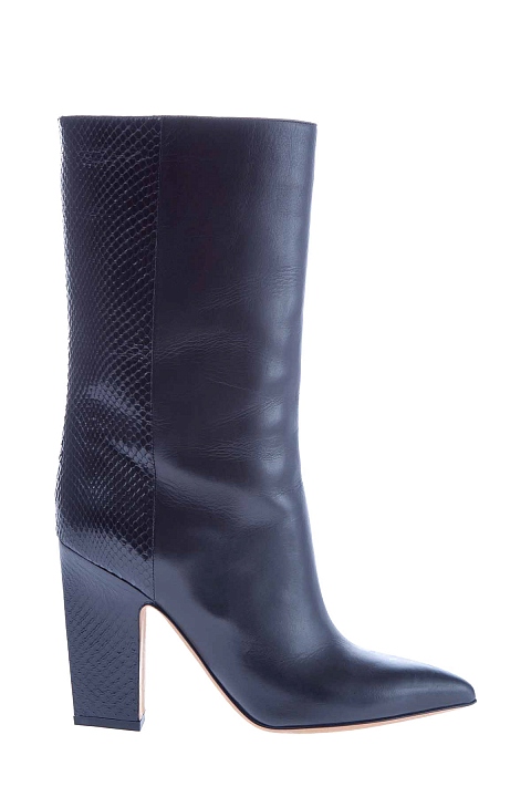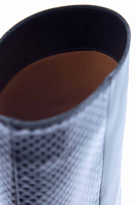 Короткие сапоги с широким голенищем из гладкой и тисненой кожи