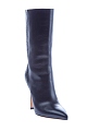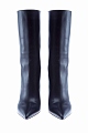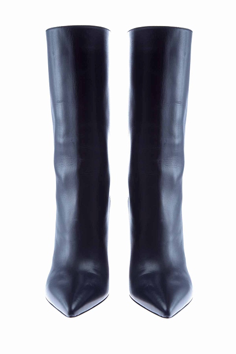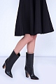 Элегантные сапоги с заостренным мыском из коллекции Valentino. Модель на широком устойчивом каблуке, выполнена из матовой телячьей кожи черного цвета. Внутренняя отделка из кожи контрастного песочного оттенка. Цельная подошва с тисненым логотипом бренда. Модель без застежек. Высотка каблука, обтянутого кожей, 10,5см. Сделано в Италии.