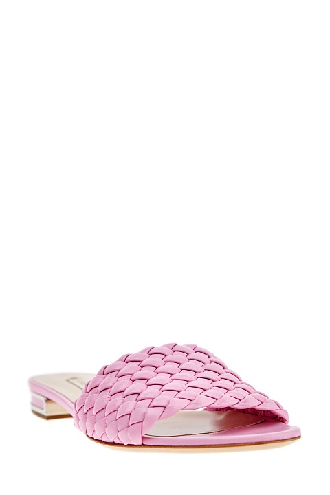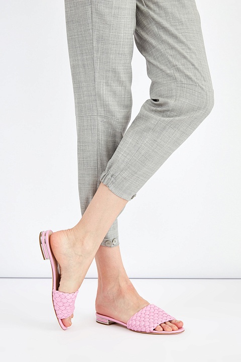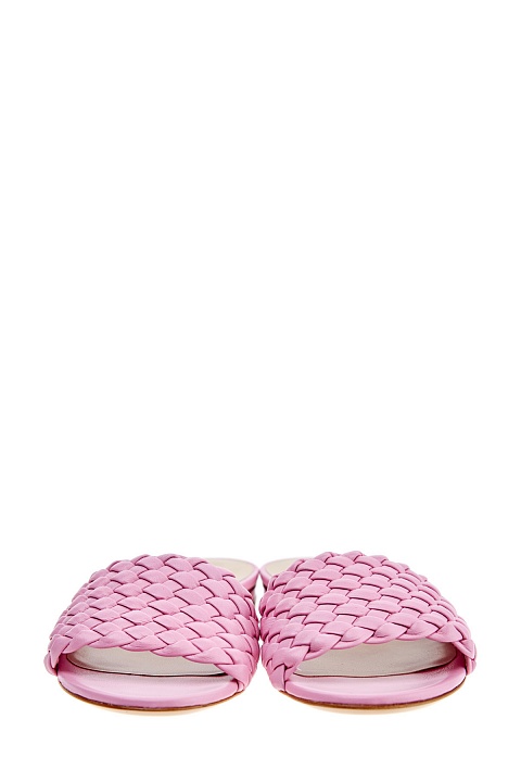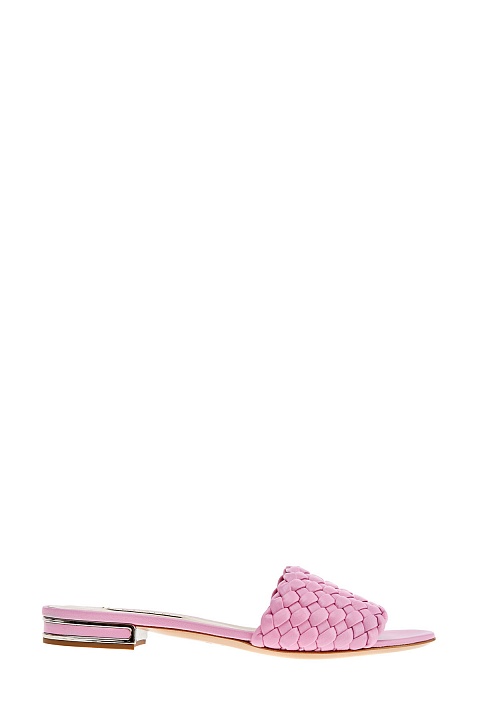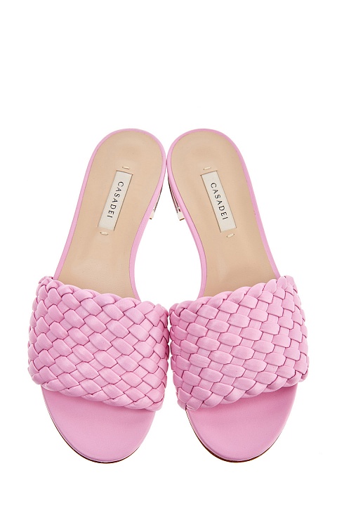 Минималистичные шлепанцы Tresse от Casadei выполнены из натуральной кожи с матовой мелкозернистой поверхностью пастельного розового цвета. Широкие верхние панели с объемной плетеной фактурой делают модель идеальной для составления летних образов. Детали: невысокий каблук с металлической отделкой стального цвета, внутренняя поверхность из кожи. Сделано в Италии.