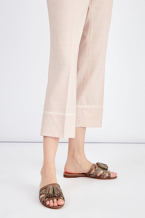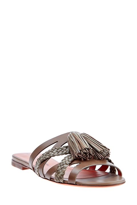 Шлепанцы из кожи с плетеной отделкой и кисточками в стиле этно