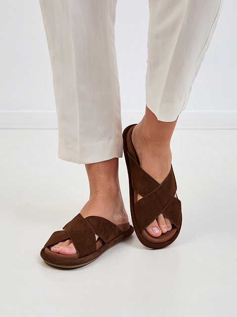 Замшевые шлепанцы ручной работы с широкими перемычками