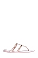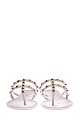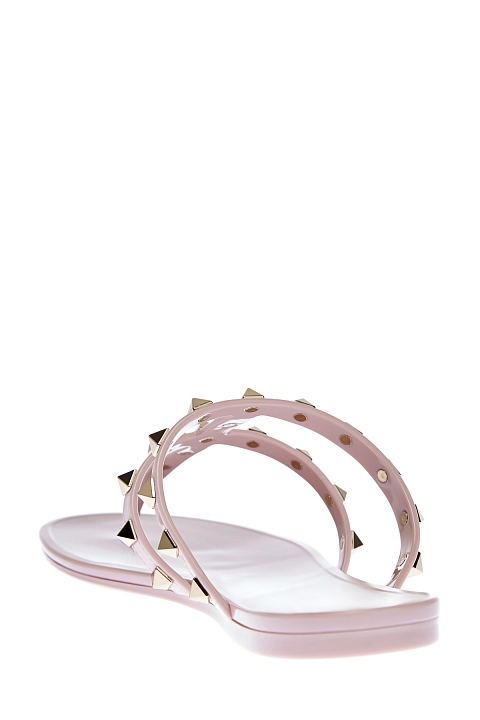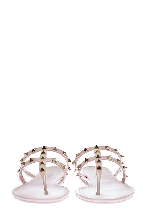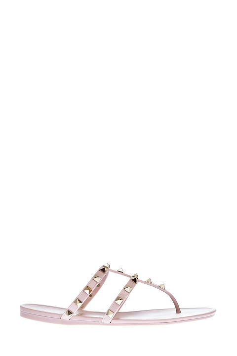 Шлепанцы Rockstud от Valentino Garavani созданы в пудрово-розовом цвете. Модель идеально подходит для завершения пляжных аутфитов за счет устойчивого к воде материала — мягкого силикона с глянцевым финишем. Фирменные заклепки дополнены платиновым напылением и вносят в образ присущую Модному дому роскошь. Детали: фиксация в стиле вьетнамок, небольшой анатомический каблук. Сделано в Италии.
