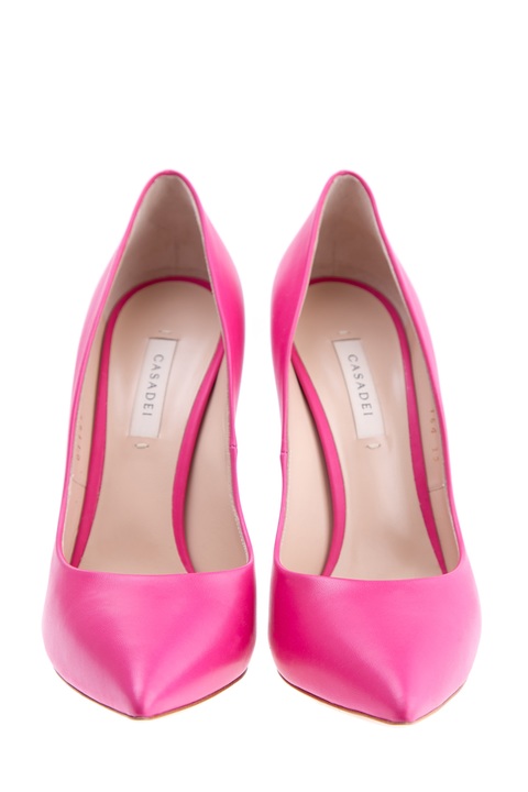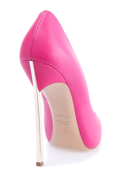 Яркие туфли-лодочки «Blade» из новой коллекции Casadei, выполненные из матовой телячьей кожи сочного цвета фуксии. Модель характеризуется зауженным мыском и каблуком-шпилькой «Techno Blade» из нержавеющей стали с особой архитектурой, которая напоминает лезвие и подчеркивает женственный силуэт. Высота каблука 12,5 см. Сделано в Италии.