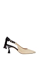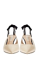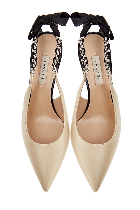 Открытые туфли-лодочки от Casadei сочетают элементы стиля глэм-рок и романтичный настрой эпохи 80-х. Модель из кожи наппа бежевого оттенка дополнена характерными для бренда цепями с завязками на утонченные атласные ленты. Особенностью модели стал оригинальный каблук Kitten Heel Blade 6 см, который выполнен из высокопрочной стали и является фирменной интерпретацией культовой невысокой шпильки. Сделано в Италии.