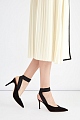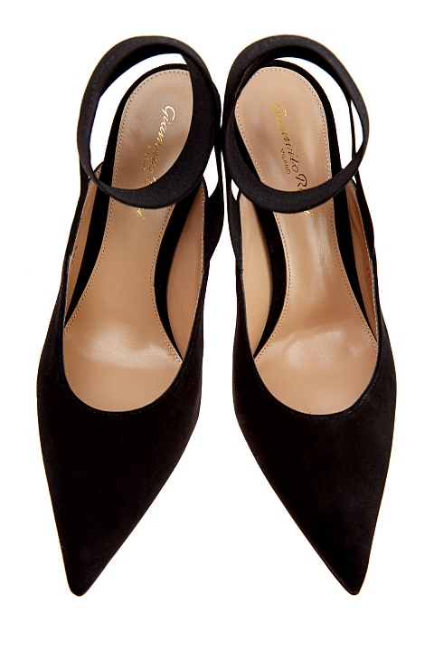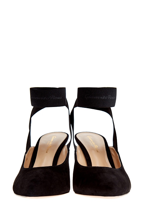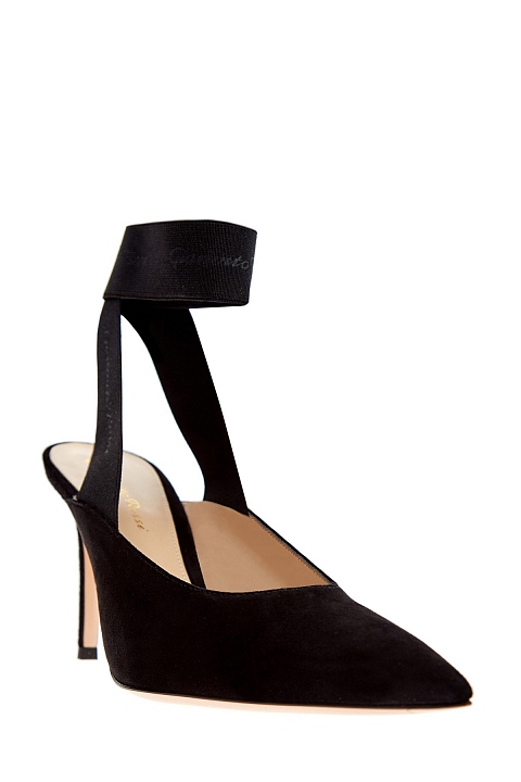 Эффектные туфли Delila от Gianvito Rossi выполнены в стиле спортшик. Модель сочетает фирменные широкие эластичные ленты carryover с монограммой бренда и мысок из бархатистой замши. Дышащая кожаная стелька и выверенная колодка сохраняют комфорт в течение всего дня. Обтянутый замшей каблук высотой 9 см завершает дизайн. Сделано в Италии.