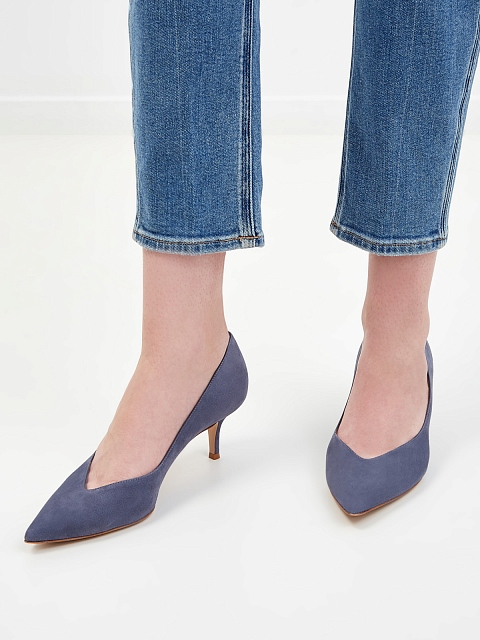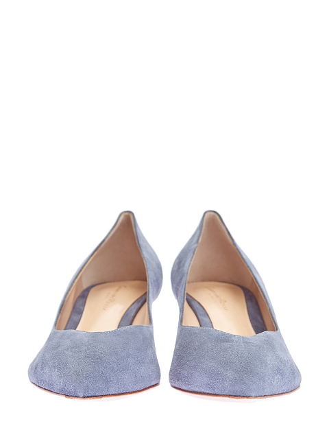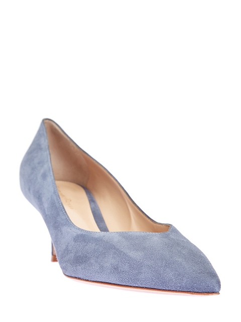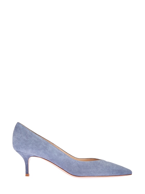 Минималистичные туфли-лодочки Paris 55 от Gianvito Rossi выполнены из бархатистой замши в оттенке «голубая пастель». Вневременной классический дизайн делает модель идеальным дополнением повседневных и торжественных аутфитов. Заостренный фигурный мысок и невысокий каблук создают элегантный образ, кожаная стелька и выверенная колодка обеспечивают комфорт. Сделано в Италии.
