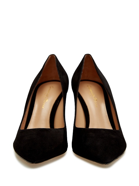 Минималистичные туфли-лодочки Piper Pump от Gianvito Rossi выполнены из бархатистой замши в базовом черном цвете. Вневременной классический дизайн делает модель идеальным дополнением повседневных и вечерних образов. Заостренный мысок и устойчивый каблук создают элегантный образ. Кожаная стелька и выверенная колодка обеспечивают комфорт. Сделано в Италии.