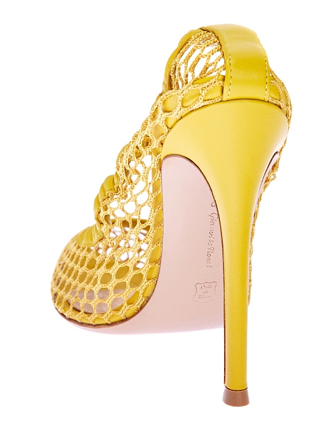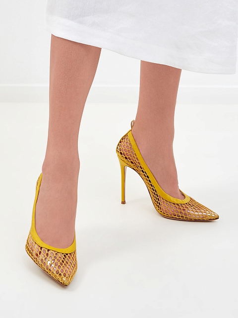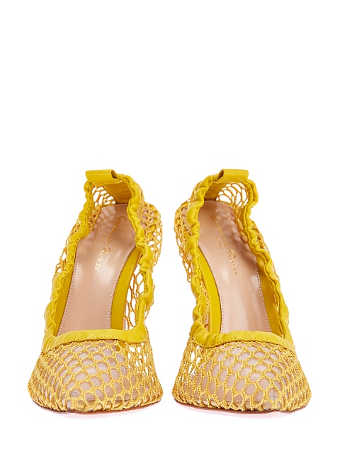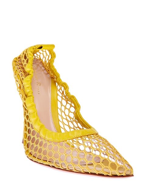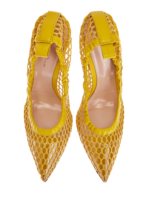 Туфли-лодочки Alisia от Gianvito Rossi представлены в насыщенном оттенке «желтая мимоза». Модель сочетает ультрамягкий сетчатый материал и деликатную отделку из кожи наппа. Верхний край с эластичной вставкой обеспечивает надежную фиксацию обуви, а амортизирующая стелька сохраняет комфорт. Детали: каблук-шпилька, держащие форму вставки из материала Plexi внутри заостренных мысков. Сделано в Италии.