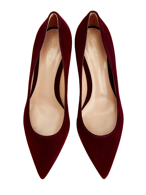 Минималистичные туфли-лодочки Piper Pump 45 от Gianvito Rossi выполнены из бархатистой замши в оттенке бордо. Вневременной классический дизайн делает модель идеальным дополнением повседневных и вечерних образов. Заостренный мысок и невысокий устойчивый каблук создают элегантный образ. Кожаная стелька и выверенная колодка обеспечивают комфорт. Сделано в Италии.