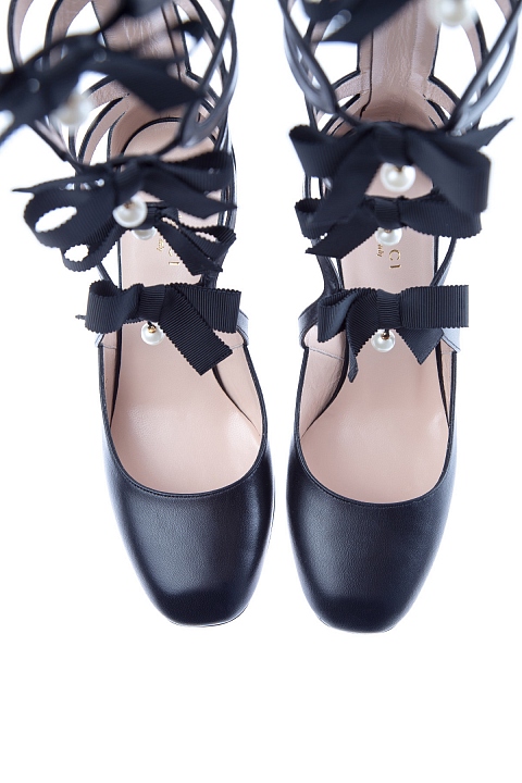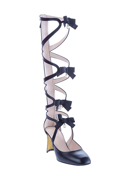 Кожаные туфли-гладиаторы с бантами из корсажной ленты