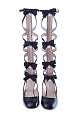 Эффектные туфли-гладиаторы от Gucci со скошенным мыском и закрытым задником. Модель выполнена из гибкой кожи теленка черного цвета. Изделие с высоким фигурным голенищем, декорированным текстильными бантами и подвесками в виде жемчужин. Гибкая подошва с символикой бренда дополнена оригинальным каблуков в форме полумесяца. Застежка осуществляется на молнию в задней части голенища. Высота каблука 8 см. Произведено в Италии.