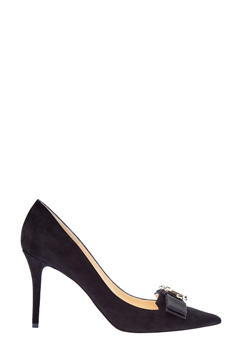 Замшевые лодочки с 3D-логотипом и острым мыском