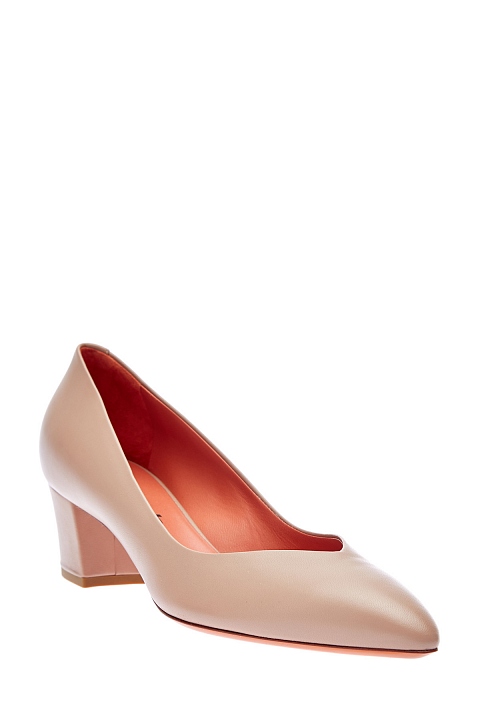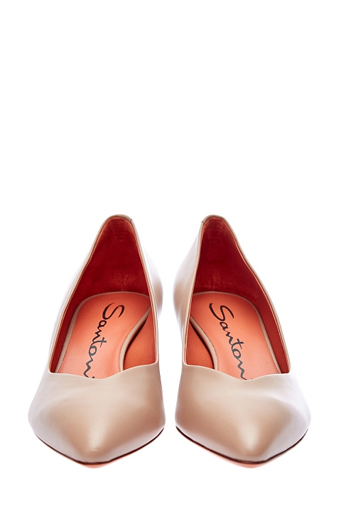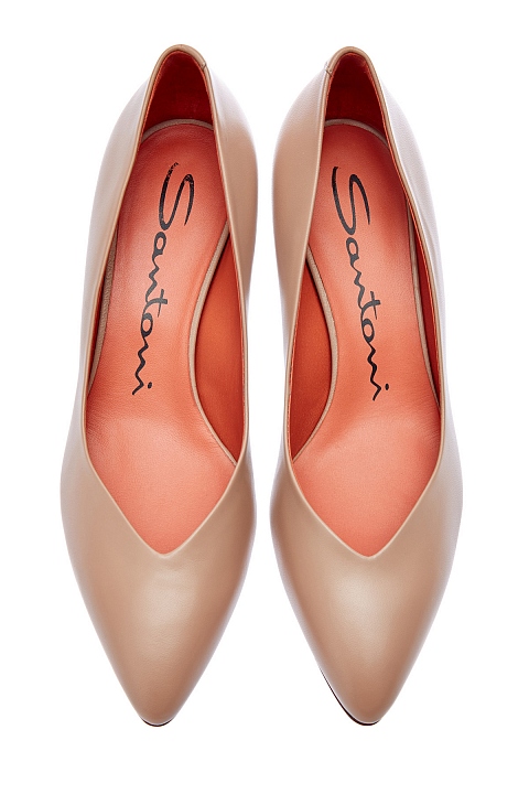 Элегантные туфли-лодочки от Santoni созданы в универсальном бежевом оттенке из матовой мелкозернистой кожи. Характерной особенностью модели стал V-образный вырез. Заостренный мысок и устойчивый каблук дополняют классический дизайн. Детали: кожаная стелька, подошва из кожи с противоскользящей отделкой. Сделано в Италии.