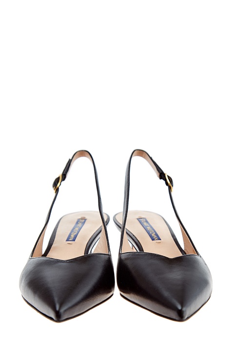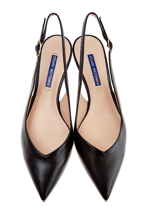 Изящные женские туфли Stuart Weitzman с заостренным мыском и V-образным вырезом изготовлены из мелкозернистой кожи черного цвета. Стелька из натуральной кожи и выверенная колодка обеспечивают комфорт в течение всего дня. Модель застегивается на ремешки с литой золотистой пряжкой. Женственный каблук Kitten Heell высотой 4.5 см завершает образ. Сделано в Испании.