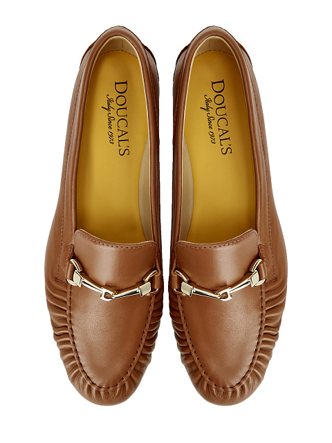 Лоферы из мягкой кожи от Doucal’s созданы вручную в оттенках коричневого цвета корицы. Модель дополнена литым трензелем из никелированного металла, а присборенная кожа на носке придает ей оригинальность и чрезвычайную изысканность. Подошва из кожи с противоскользящей накладкой из резины выполнена по конструкцией Cemented с использованием высокопрочных экологичных материалов. Сделано в Италии.