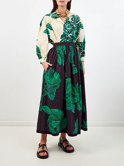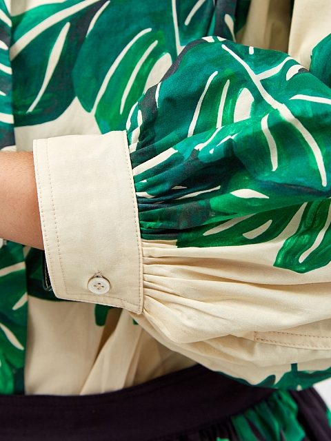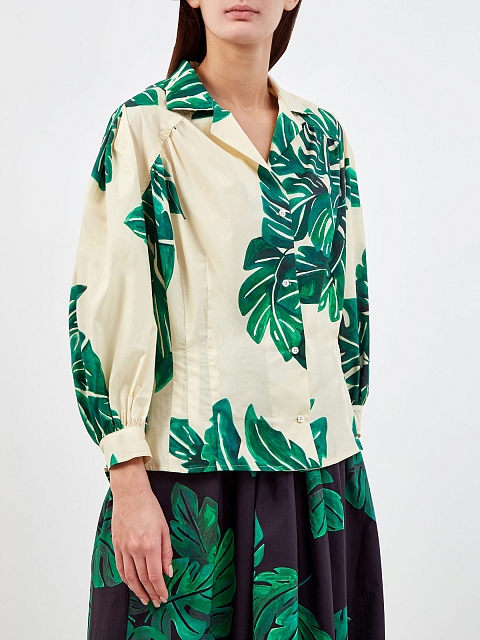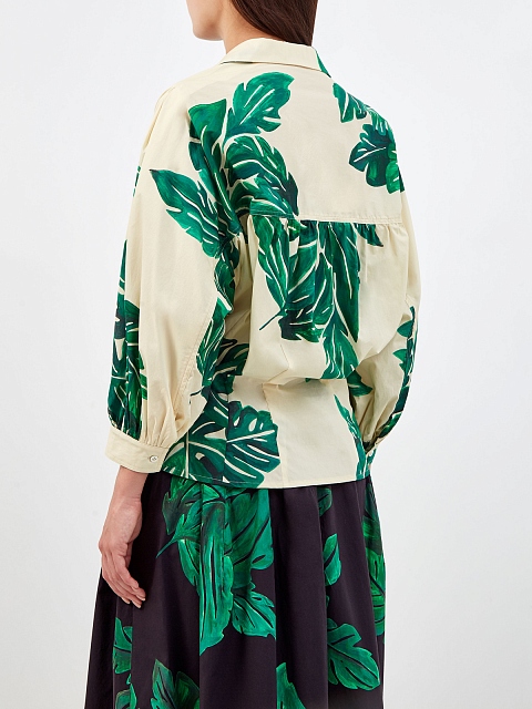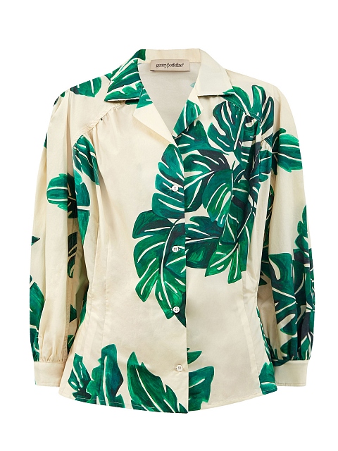 Рубашка приталенного кроя с объемными рукавами и принтом