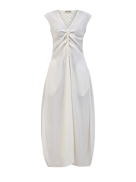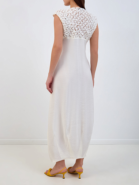 Платье из гладкого модала со сборкой и ажурной вставкой