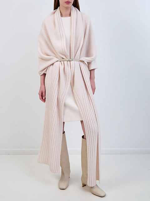 Шарф-палантин из шерсти с вязаным узором в полоску