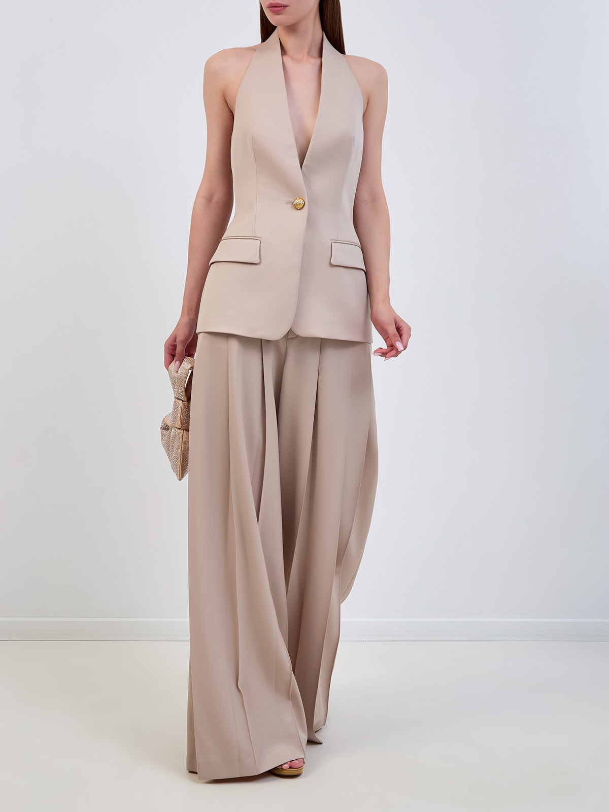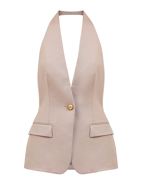 Жилет из шерсти с V-образным вырезом и открытой спиной