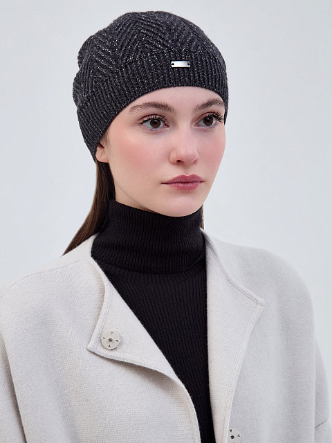 Шапка узорной вязки из шерсти с серебристой нитью ламе