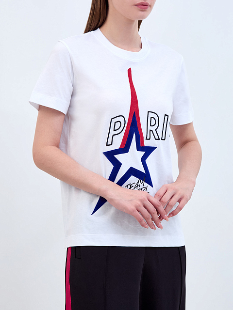 Футболка из хлопка джерси с аппликацией и вышивкой Paris
