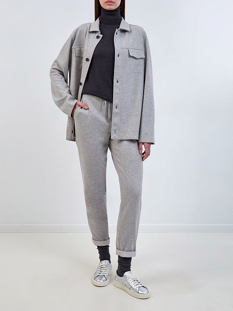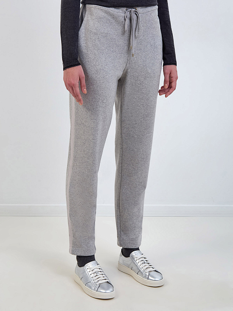 Женские брюки из меланжевой шерсти с поясом на кулиске и символикой LORENA_ANTONIAZZI купить за 48 230 руб.