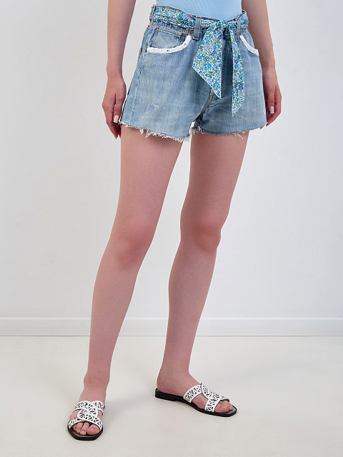 Джинсовые шорты с платком и кружевной отделкой Sangallo