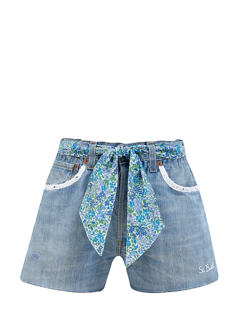Женские джинсовые шорты с платком и кружевной отделкой sangallo MC2_SAINT_BARTH купить за 23 580 руб.