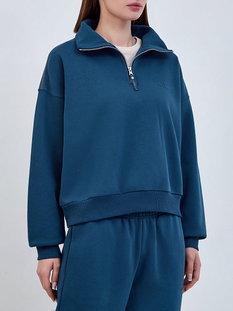 Толстовка half-zip из плотного хлопка с логотипом в тон