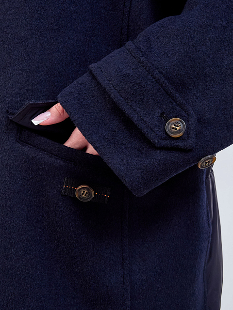 Пуховое пальто из шерсти с утепленной стеганой отделкой