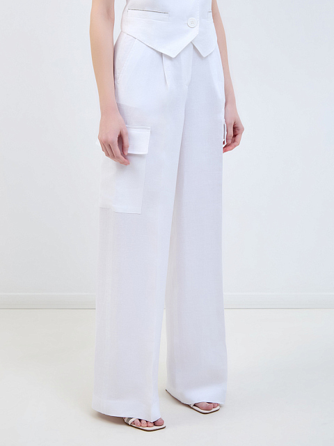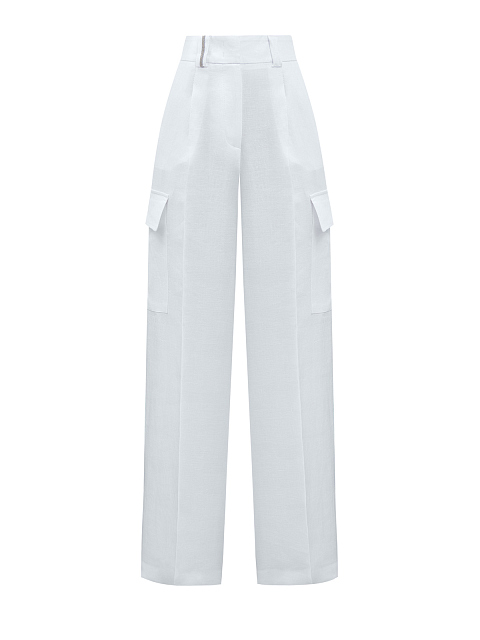 Брюки-карго из льняного габардина с деталью Punto Luce