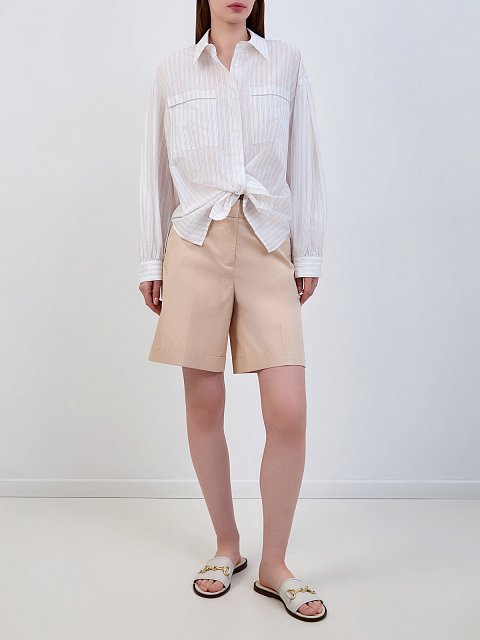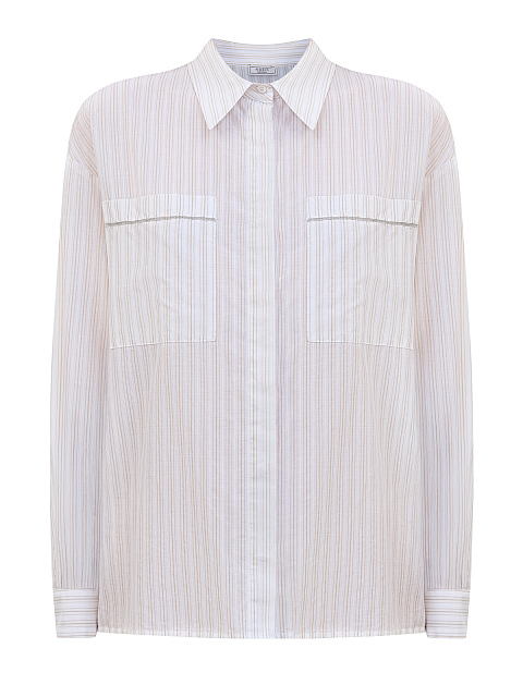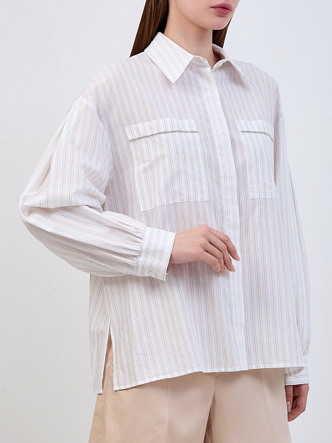 Рубашка из хлопковой органзы в тонкую полоску с цепочками