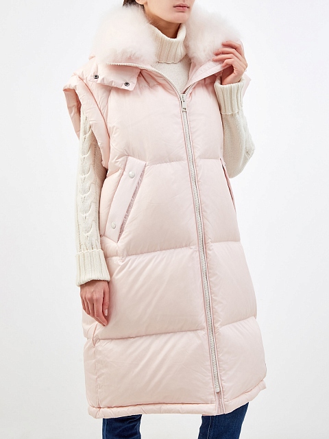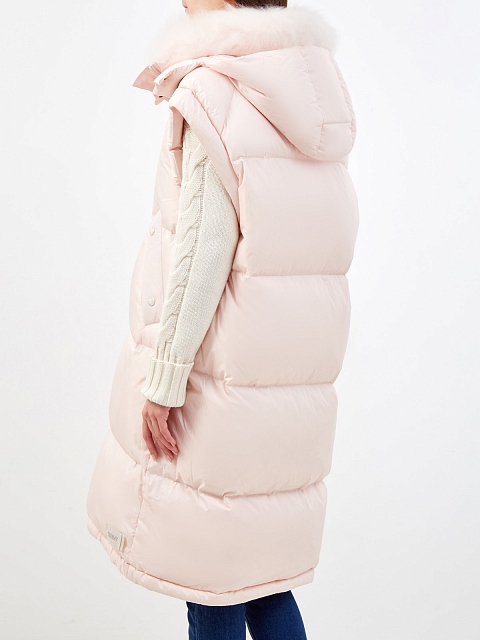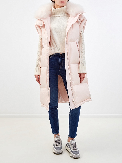 Стеганый жилет с пуховым утеплителем и меховой отделкой