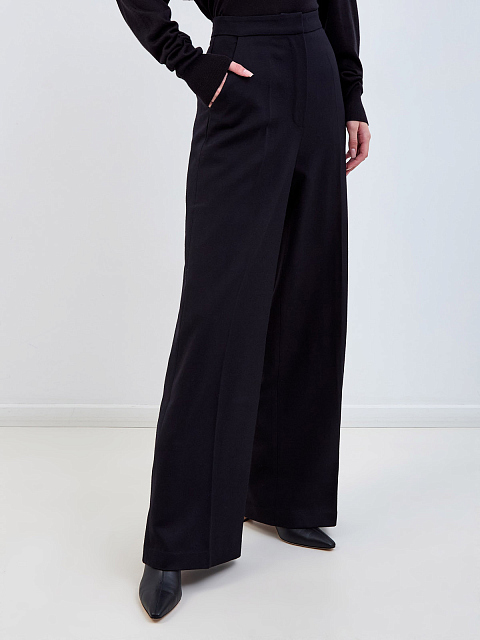 Брюки-палаццо из шерстяного габардина с заложенными складками