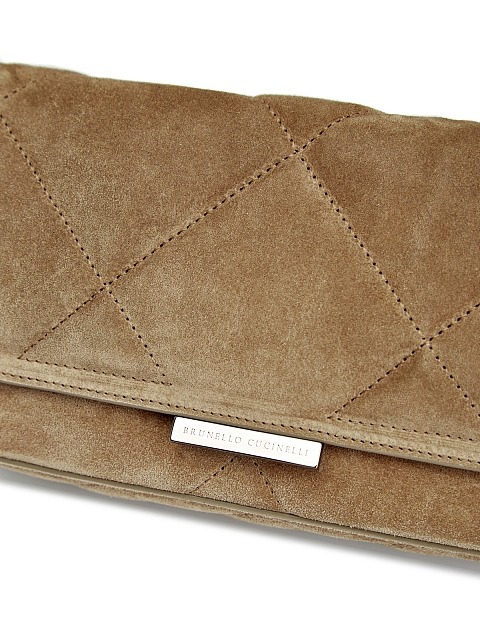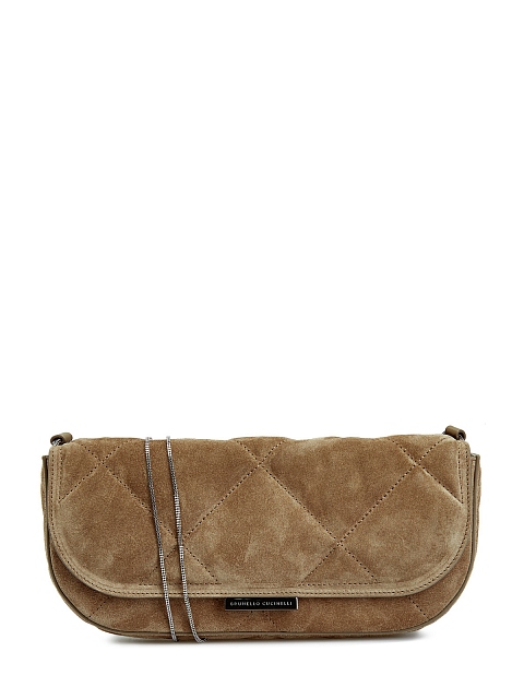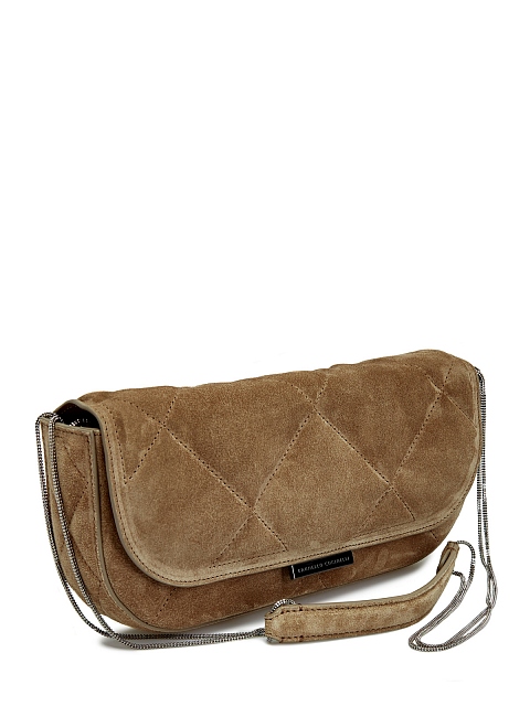 Изысканная женская сумка от Brunello Cucinelli выполнена из бархатистой замши в кофейном оттенке. Классическая форма в сочетании с подкладкой из кожи наппа делает модель элегантным дополнением повседневных и вечерних образов. Тонкий ремешок-цепочка и клапан с литым логотипом завершают дизайн. Сделано в Италии.