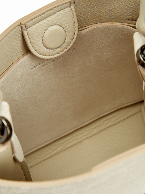 Элегантная сумка классического прямоугольного силуэта от Brunello Cucinelli создана мастерами бренда вручную. Мягкость изысканной замши интерпретирует модель формата мини в современном ключе. Лаконичные геометрические формы мерцают благодаря двум вставкам из цепочек Мониль, позволяющим регулировать ширину аксессуара. Вставки украшают боковые стороны сумки изящным сверкающим эффектом. Съемный регулируемый плечевой ремень завершает аксессуар универсальной деталью. Сделано в Италии.