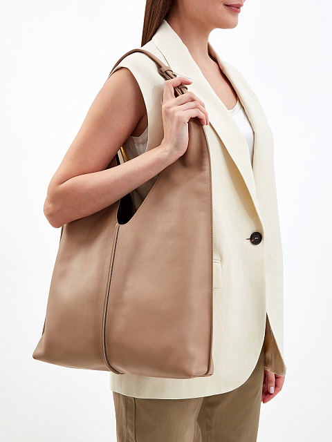 Объемная сумка-тоут из мягкой кожи с ювелирной цепочкой Мониль