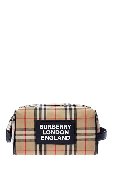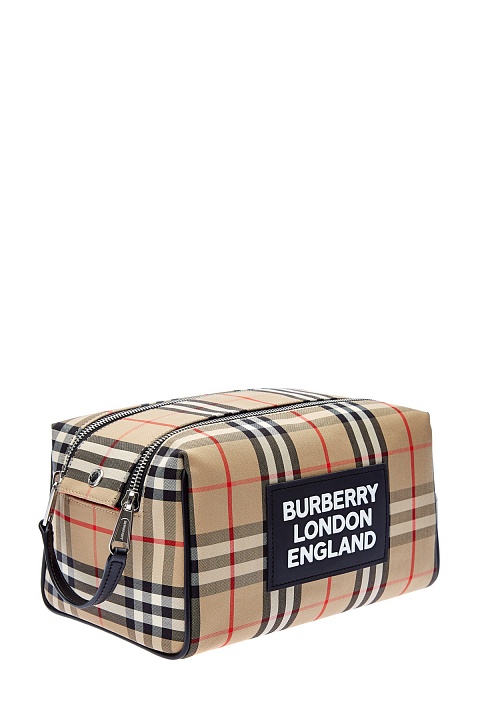 Косметичка-несессер от Burberry выполнена из плотного хлопка с фирменным принтом Vintage Check в медовой гамме. Вместительный аксессуар оснащен двумя молниями, которые обеспечивают легкий доступ к содержимому. Внутри: одно отделение полностью на подкладке с карманом на застежке. Детали: отделка из телячьей кожи, широкая ручка, логотип из силикона.