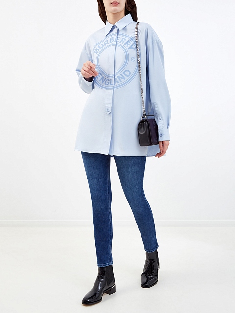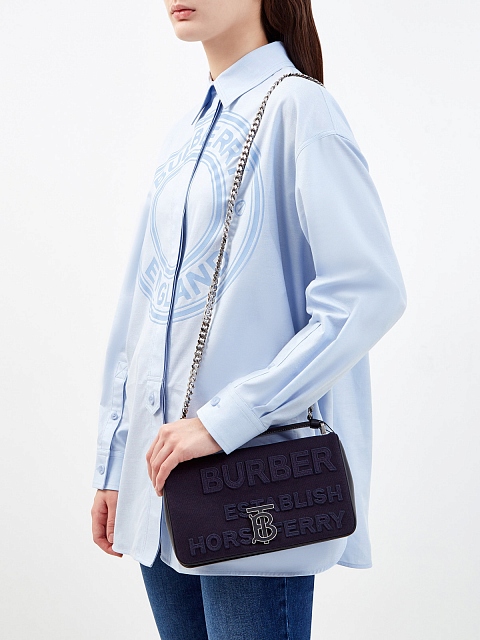 Элегантная сумка из подиумной коллекции от Burberry выполнена из хлопка и льна и дополнена вышитым принтом Horseferry. Ремешок-цепочка и монограмма в виде инициалов Томаса Берберри подчеркивают присущий бренду изысканный стиль. Детали: ремень из кожи ягненка, магнитная застежка-клапан, внутренний карман.