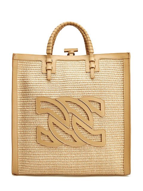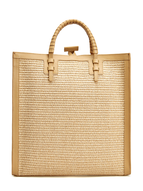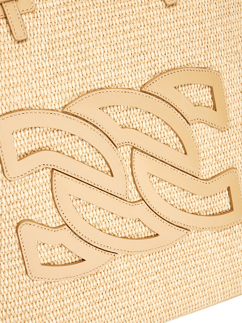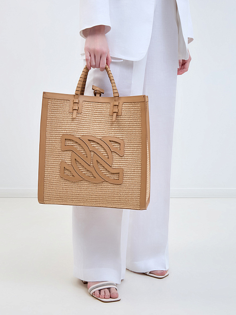 Сумка-тоут из плетеной рафии с кожаной отделкой и логотипом